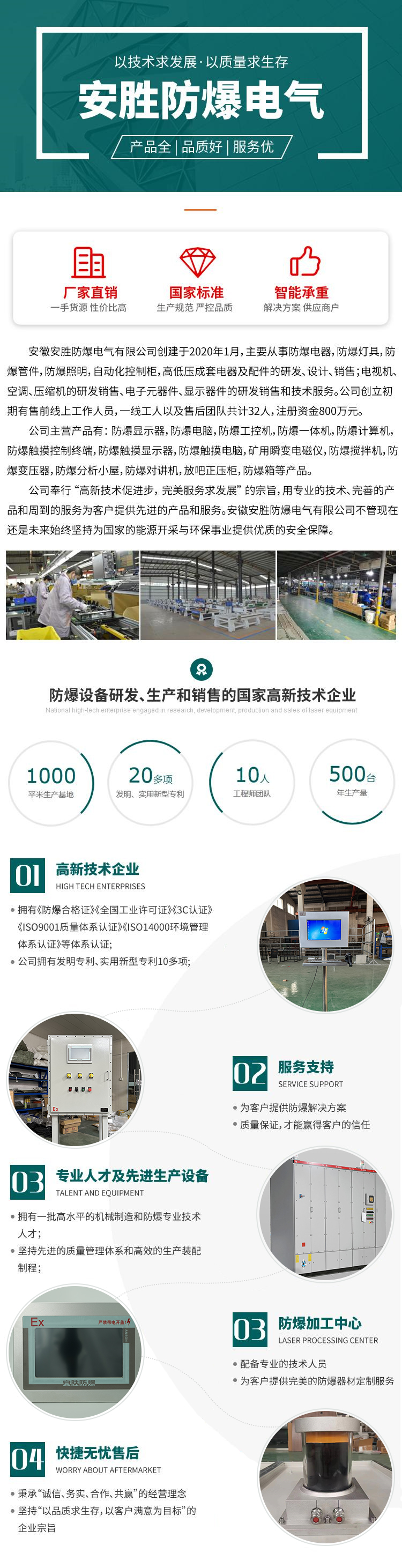 安胜防爆D系列防爆显示器为碳钢焊接,后高压静电喷塑加工完成,表面阳极氧化,大体美观,具有出色的防爆性能以及防水性能。